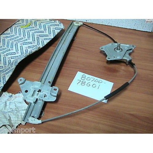 Part name: Window regulator RIGHT side Fits car MAKE(s): Nissan Fits car MODEL(s): Pickup Pathfinder Fits Year(s): Pickup 1995-1996 Pathfinder 1990-1994 Part NUMBERS: 80700-78G01 Part Manufacturer: Nissan Details: Rightside window regulator. As with ALL of the parts we sell, they are IN STOCK, and more pictures or descriptions are available. If you have any doubt as to fitment, please contact us with your car specifics. Think of us as your old time local parts store with literally tons of Import parts, where we can "show" them to you over the counter. You may contact us directly M-F 8-5 Central at (800) 362-1025 (toll free USA) or (608) 223-9400. We want you to get the right part that you need. Thanks Peter and Jane
